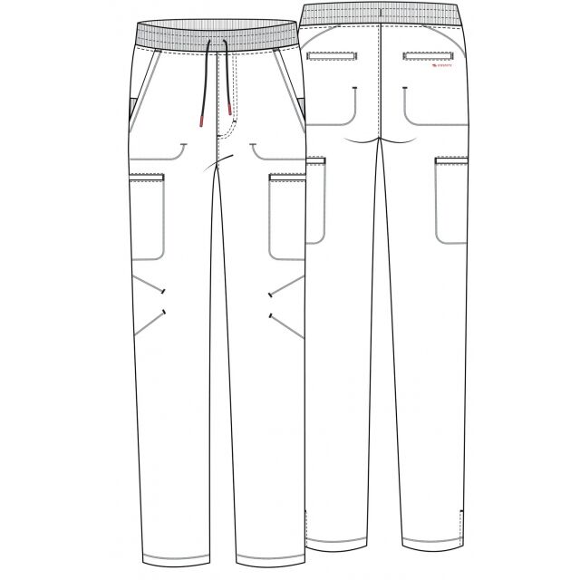 Kišenių tipai: 2 priekinės kišenės, 2 šoninės kišenės ant šlaunų, 2 galinės kišenės
